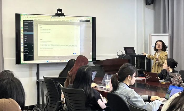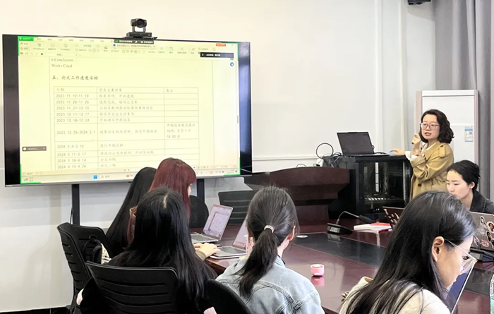 会上,李老师强调了2024届英语毕业论文的指导规范,并期望各位与会论文指导教师能共同携手、推动英语毕业论文的高质量发展。她主要从毕业论文指导及线上流程、开题报告提交与审核、文献综述写作与审核意见标注指南、论文指导与修改规范的注意事项、论文写作与引文标注的规范要求五个方面进行了详细总结和规范指导。通过生动形象的事例,为论文指导老师们指明了现阶段论文指导需注意的事项以及相应的改进方法。