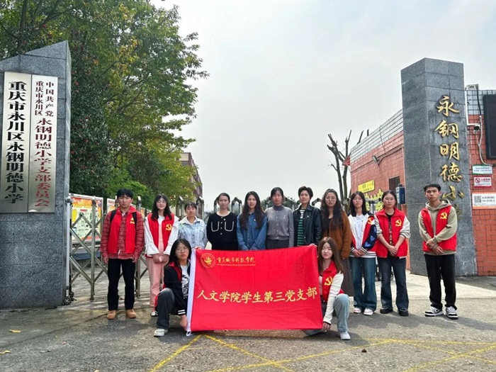 3月22日中午,人文学院学生第三党支部于永川区明德小学开展职业生涯体验活动,通过亲身进入社会、体验不同职业,让学生党员同志们能进一步处理好职业价值观与兴趣特长、个人理想的关系,深化职业价值观中个人与社会关系问题的思考。本次党日活动由支部书记李建霞、副书记李楠带队,三支部教师及学生党员共同参与。