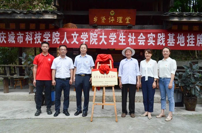 为推动我校大学生素质教育发展,7月6日,人文学院联合永川区卫星湖街道石龟寺村开展暑期“三下乡”第三站社会实践活动,共建大学生社会实践基地。街道党工委副书记、办事处主任周霞,党工委组织委员陈树林,重庆城市科技学院党委副书记、副校长贾瑞,人文学院党总支副书记纪振鹏,共同出席了本次大学生社会实践基地挂牌仪式。