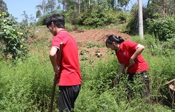 劳动创造幸福,奋力书写华章。7月5日下午,在炙热的骄阳之下,人文志愿者们在七郎村便民服务中心的绿化花坛中开展志愿除草、美化环境活动。纵使天气炎热,但仍不阻挡大家的除草热情。他们徒手拔起根系牢固的杂草,用锄头挖开土面。一扬一挖一铲,都是志愿者们敢吃苦、肯奋斗的体现。他们用切实有效的行动除草护植,美化环境。