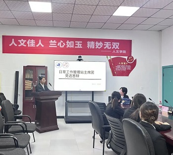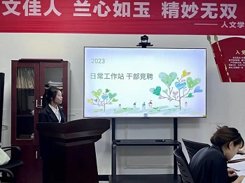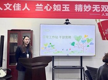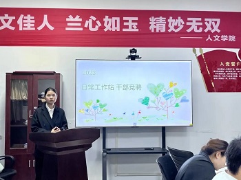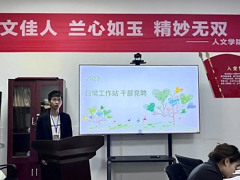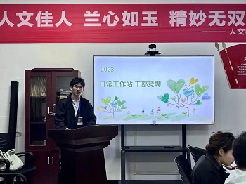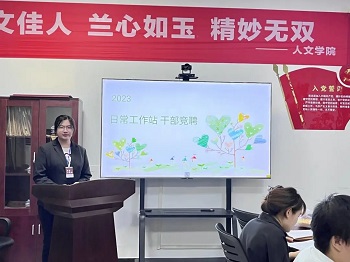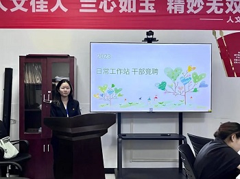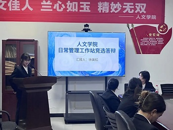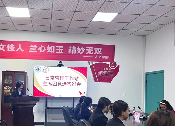 为进一步促进人文学院日常管理工作站的持续发展,完善组织建设,提升整体素质。我院于6月14日、19日21时于人文学院党员活动室开展人文学院日常管理工作站的骨干竞聘答辩会。人文学院日常管理工作站站长徐杰,指导老师郎月婷、邓颖蕾、杨帆、周霞担任本次答辩的评委。