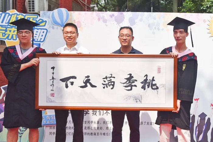 饮水思源,师生情长。各位老师为毕业生们赠予毕业纪念品,四年拼搏换取下一段旅程的车票,老师们把满腔的牵挂化作殷殷的祝福和鼓励,同学们脸上洋溢着的是对前途的憧憬与向往,每一份珍贵的纪念品是老师对同学们的骄傲和不舍,更是对同学们未来繁花似锦的美好祝愿。
