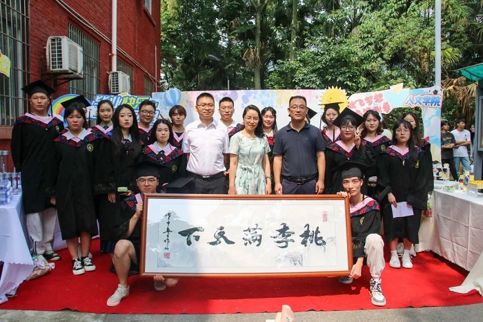 最后,毕业生代表们为学院献礼,回首在人文与同学和老师的一起奋斗和走过的四年,细数这四年在校生活中的点滴,全部都是美好而又难忘的回忆,真诚的笑容,温馨的祝福以及赠予学院的刻着“桃李满天下”的字牌匾,纷纷表达了同学们对学院领导和老师们的谆谆教诲最诚挚的谢意,今虽别离,感念师恩难舍同窗,但相信所有毕业生们都会带着领导和老师们的祝福踔厉奋发新征程,挺膺担当向未来。