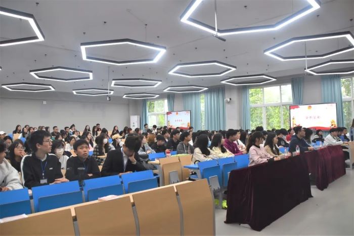 伴随着入团誓词宣读完毕,田甜老师开始以“学生党员的先锋模范作用”为主题进行第一讲授课。她强调,青年学生们必须不忘初心,砥砺前行,要培养和践行社会主义核心价值观,学习和发扬党的二十大精神,将党的二十大精神投入实践之中,为全面提高学生的素质能力和促进学院发展建设出一份青春力量。通过老师认真详细地讲解和科普,在座学生更加了解了团的理论、路线、方针,以及团员的各项义务,让学生们对团有了更深入的了解。
