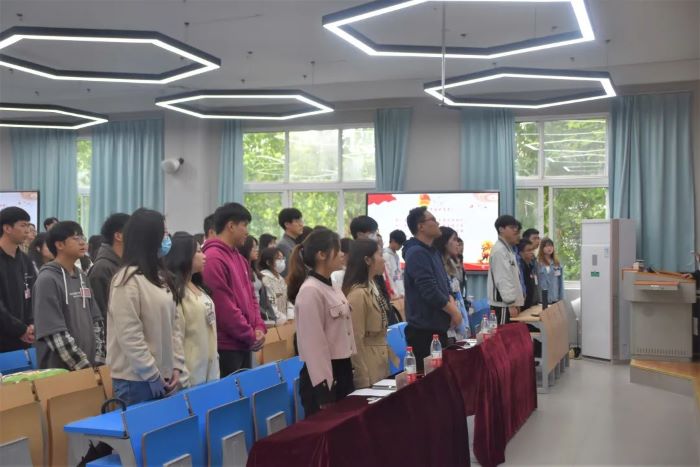 全体起立,奏唱团歌。嘹亮的合唱唱出大家对共青团的美好祝福,一句句有力的歌词传达出师生们对共青团深厚的情怀。