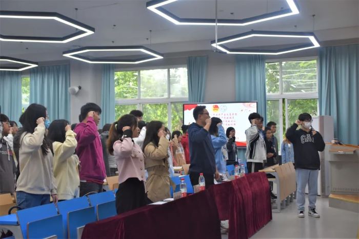 学生代表周荣鑫带领参会人员重温入团誓词,声声誓言,铿锵有力,以青春的名义许下誓言,立鸿鹄志,做奋斗者。