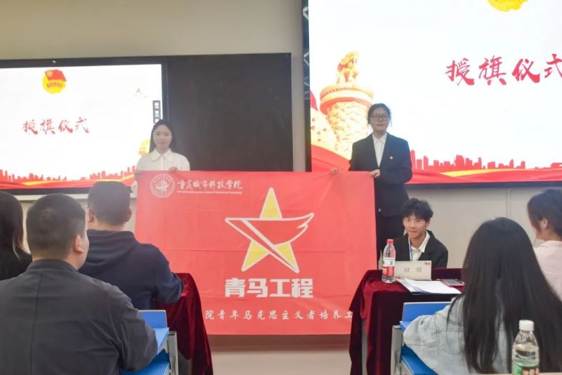 青年风采,党史辉煌。田甜老师在致辞后为青马学员代表进行授旗,庄严的旗帜将会为大家指明前进的方向。祝愿初级班的同学们能够勇担强国使命,在奋斗中绽放青春光芒。