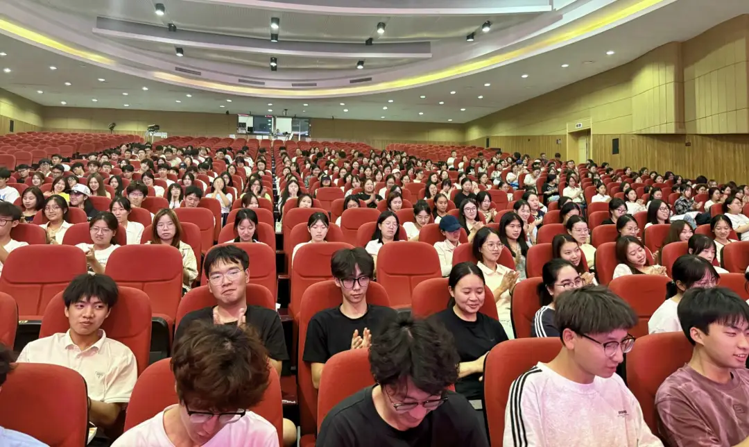 讲座尾声,一场“一分钟拍手计数”的小游戏将氛围推向高潮。通过轻松有趣的互动,陈源女士引导新生体会“潜力源于尝试”的道理,鼓励大家勇于探索专业学习的无限可能。最后,她以席慕容《起航》中的经典诗句作结,用“我用生命的热诚把你照亮,让你在我的肩膀上起飞”寄语新生,希望大家以本次讲座为起点,在中文专业的沃土上坚定前行,开启人生新航程。