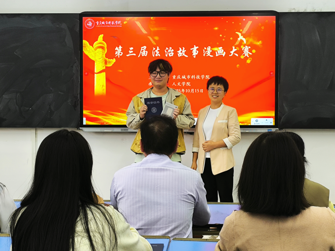 2025年10月15日,重庆城市科技学院第三届"校园法治故事漫画大赛"颁奖仪式于主教106顺利举行,标志着为期近一个月的法治宣传教育活动圆满落下帷幕。本次活动由重庆城市科技学院主办,人文学院与新视域文化产业学院共同承办,以"法治护航青春,画笔描绘正义"为主题,旨在通过生动有趣的漫画形式,推动法治精神在校园内落地生根,进一步提升学生的法治素养与艺术创作能力。
