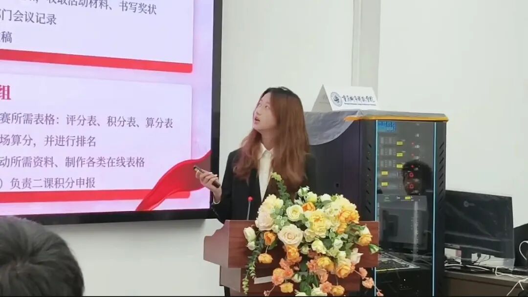 述职完毕,团学指导老师刘竞之对全体骨干的工作汇报进行点评,强调学生工作始终要以服务师生成长为根本宗旨,立足当下做好常规工作,更要着眼长远探索创新路径。鼓励大家将学到的理论知识转化为工作实效,在服务同学中锤炼本领、增长才干,同时也围绕纪律作风建设、团队协作能力提升等方面提出具体建议,为学生工作高质量发展指明方向。