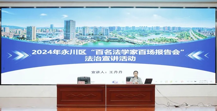 2024年12月18日,重庆市永川区司法局邀请重庆城市科技学院人文学院副教授、永川区首席法律咨询专家、永川区民营企业纠纷人民调解委员会委员、调解员、北京盈科(重庆)律师事务所王丹丹作主题宣讲。