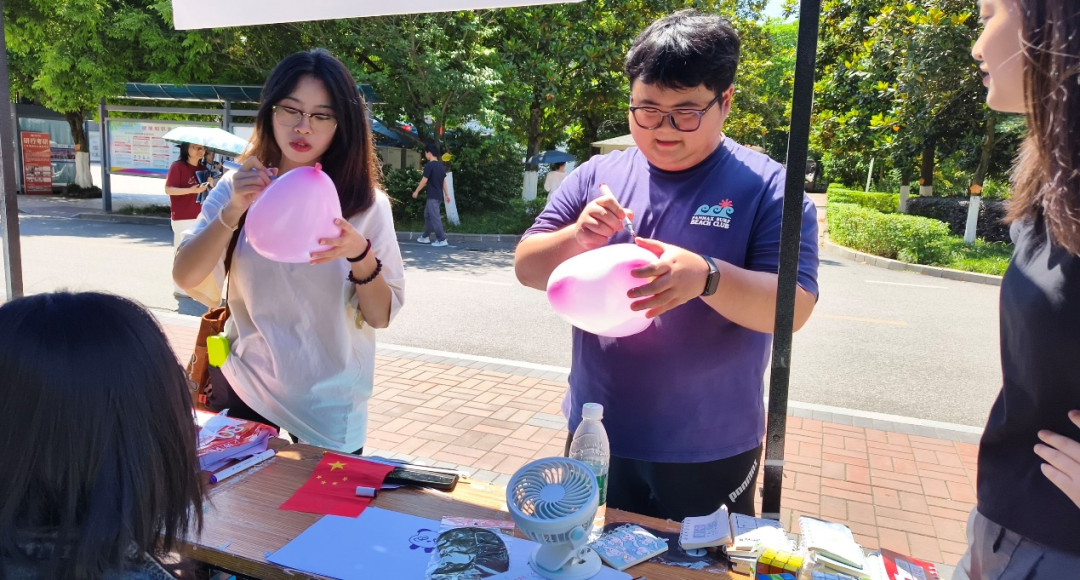 师生们将焦虑、压力等负面情绪书写于气球表面,随着气球的爆破声,将压力转化为轻松的笑声。