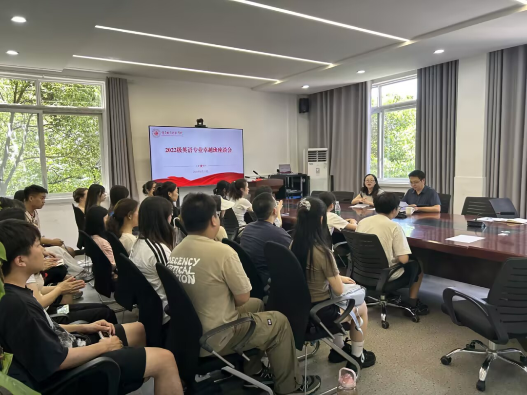 为了进一步推动英语卓越班的人才培养计划,2025年5月21日,人文学院22级英语系在人文学院223会议室里进行了与人文学院领导面对面的交谈会。