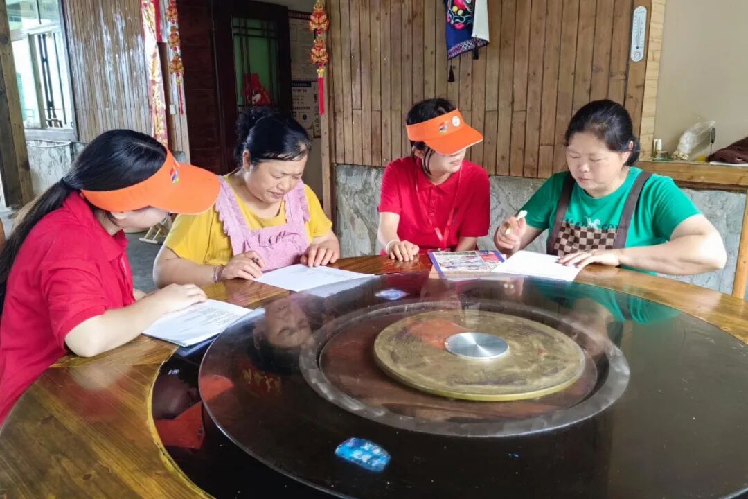 经当地村委会同意,“法润人心”社会服务践行团深入村寨开展户外普法活动,携带普法手册、案例图解等资料走家入户,围绕遗产继承、劳动合同、消费维权等民生热点,以“拉家常”方式讲解法律知识。在村民院坝里,成员们对照《民法典》继承编,用“家产分配”实例说明子女平等继承权;针对务工村民,现场展示劳动合同模板,详解“未签合同可主张双倍工资”等维权要点。遇到民宿经营户咨询退订纠纷,队员演示“保存聊天记录、订单截图”等取证方法,帮助大家深入理解法律条文。