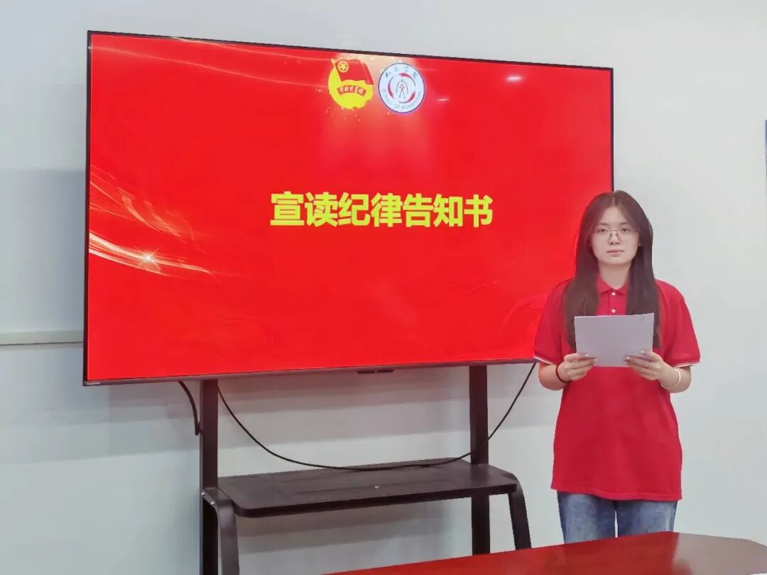 无规矩不成方圆。主持人陈婧宣读人文学院2025年暑期“三下乡”社会实践纪律告知书,从集体行动、安全行为、形象礼仪、教师职责、违纪处理五方面明确规范,确保活动有序开展。