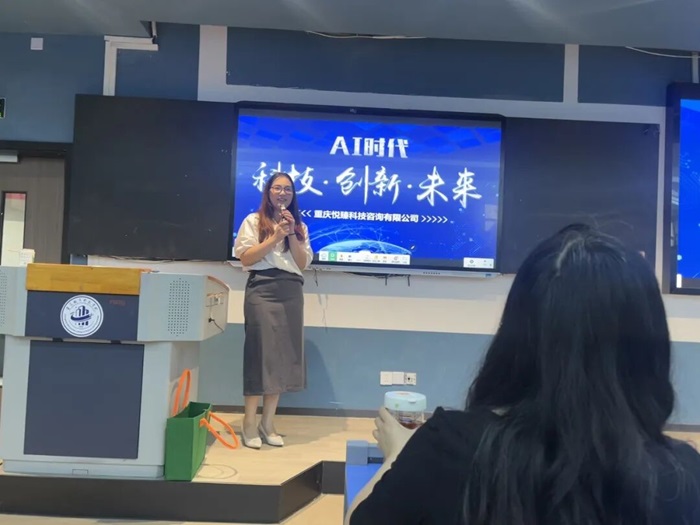 2025年9月22日,人文学院英语专业2025级新生开学第一课在第五教学楼102教室圆满举行。本次会议由重庆城市科技学院新视域文化产业学院主办,以“人工智能与当代英语学习模式探讨”为主题,通过校企联动、师生互动的创新形式,为英语专业新生开启外语学习新征程。活动由外国语言与文化系系主任曾右美主持,重庆悦臻科技有限公司校企宣讲负责人李秋红、教师代表及2025级全体新生共同参与。