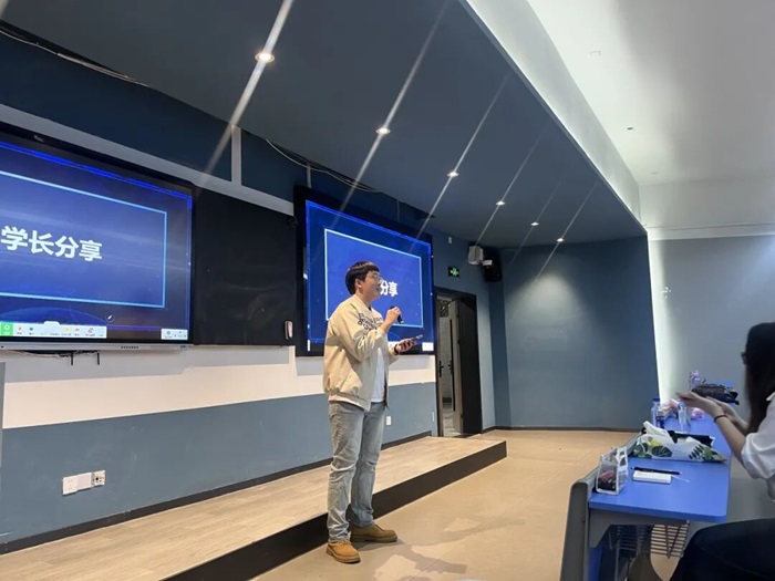 在“学长分享环节”,英语专业22级5班学生胡开原作为学长代表,结合自身经历,从竞赛准备、跨文化交际实践到校外实习,为新生提供实用建议。他表示:“外语不仅是沟通工具,更是打开世界的钥匙,希望学弟学妹珍惜平台,勇敢探索。”