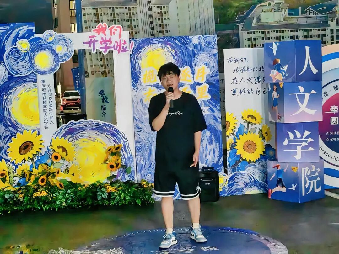 九月晚风裹挟着青春气息,动人旋律点亮迎新之夜。9月13日晚,人文学院于迎新大本营举办2025年“文韵新声”青春歌会。青春歌会以青年学子喜爱的方式,为新生与迎新志愿者搭建起交流桥梁,让陌生在歌声中消融,让情谊在互动中升温。本次活动由彭程同学主持。
