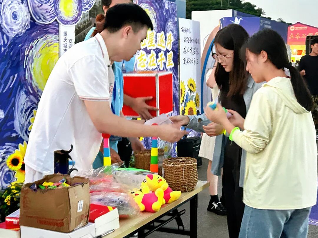 中场互动环节更是将气氛推向高潮。歌词接龙游戏中,同学们凭借对热门歌曲的熟悉度积极抢答,获胜者抱走零食大礼包;“你划我猜”音乐版考验团队默契,夸张动作与默契配合逗得全场大笑;盲盒抽签唱指定曲目的环节,让随机与惊喜交织,每位参与者都成为舞台焦点。