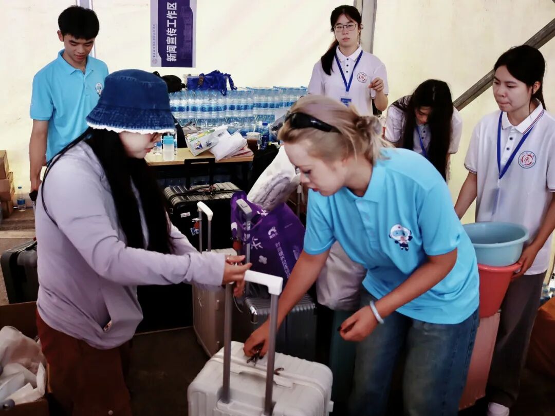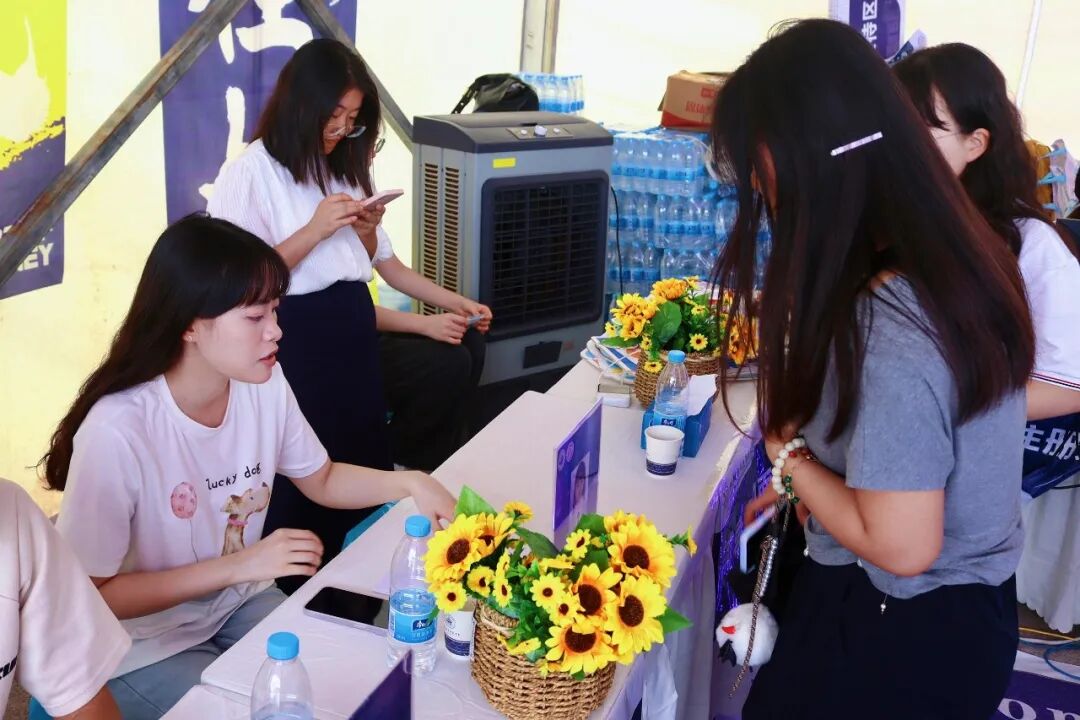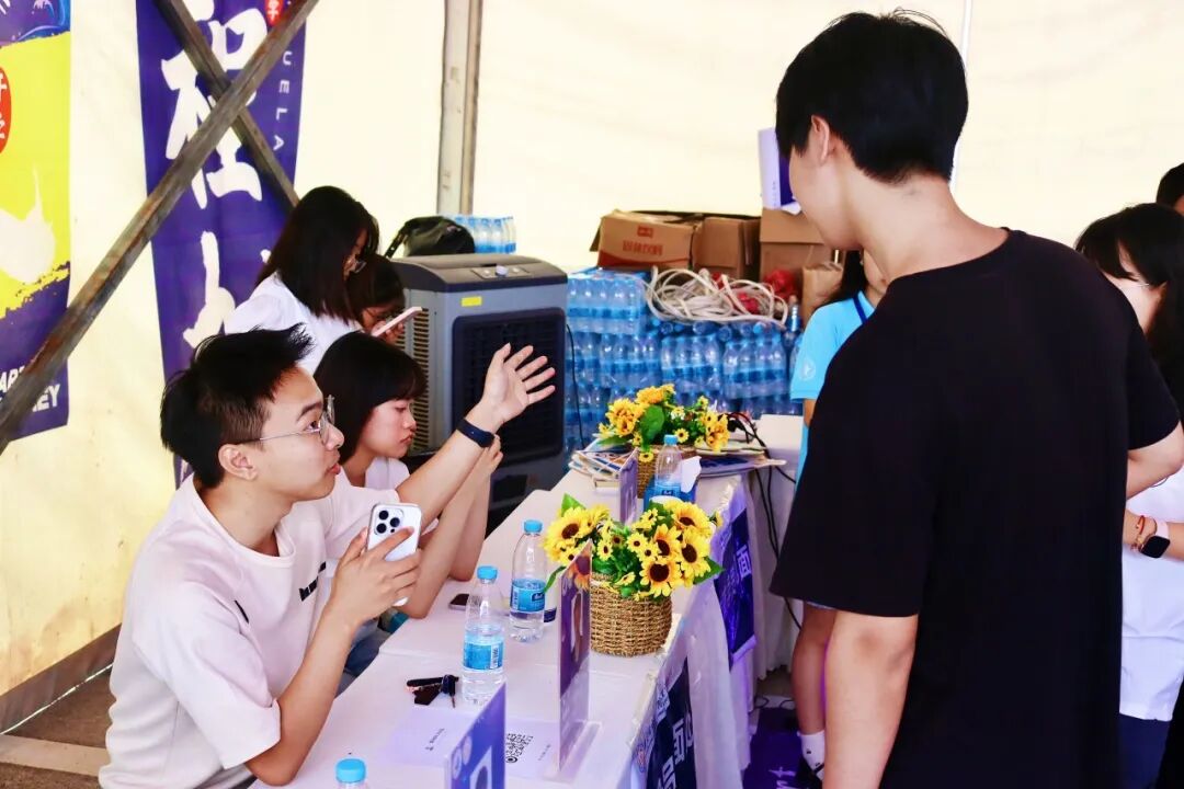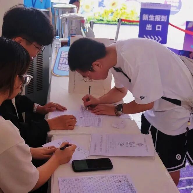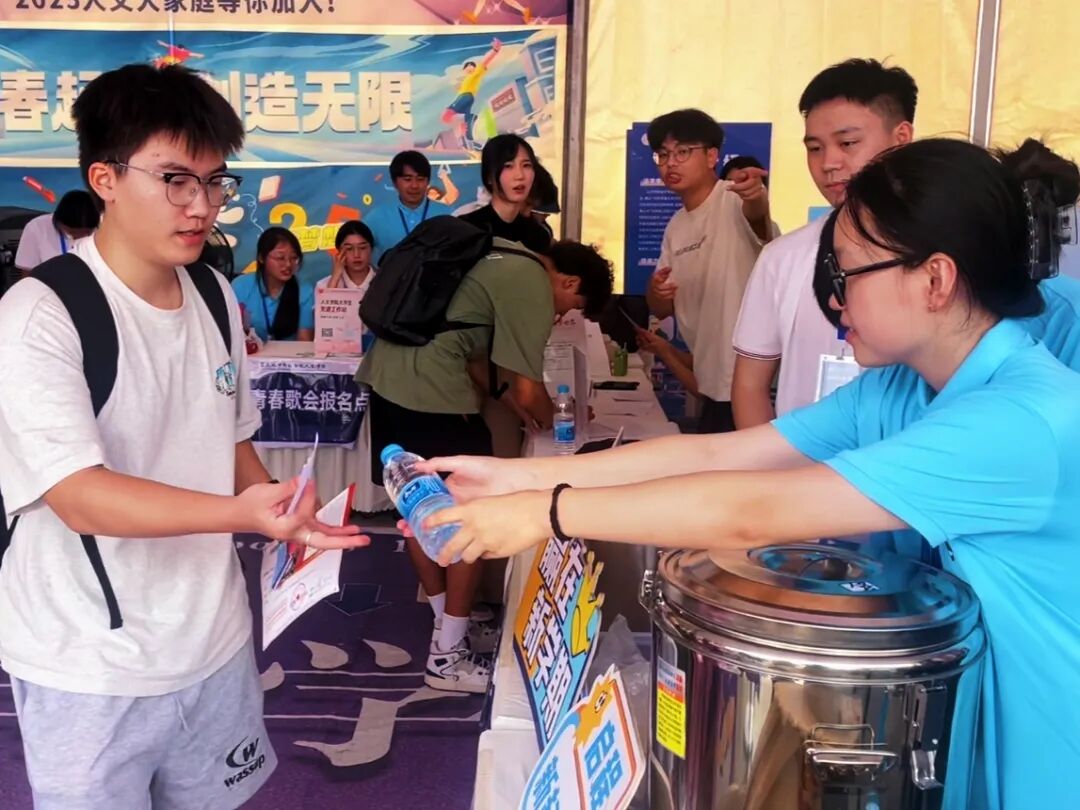 学院迎新细节满满,尽显关怀。家长休息区备有座椅和饮用水,供长途奔波的家长歇脚;行李寄存处,志愿者用号码牌高效为新生暂存行李,减轻携带负担;现场的酸梅汤供应点,在微凉的初秋,为新生和家长送上一份清爽与惬意。