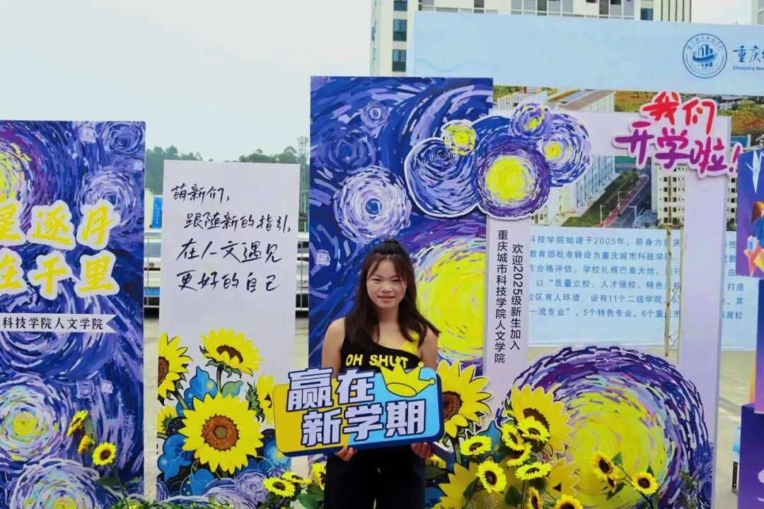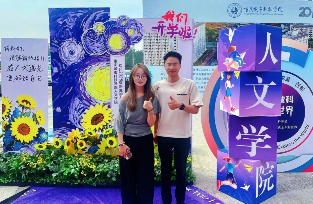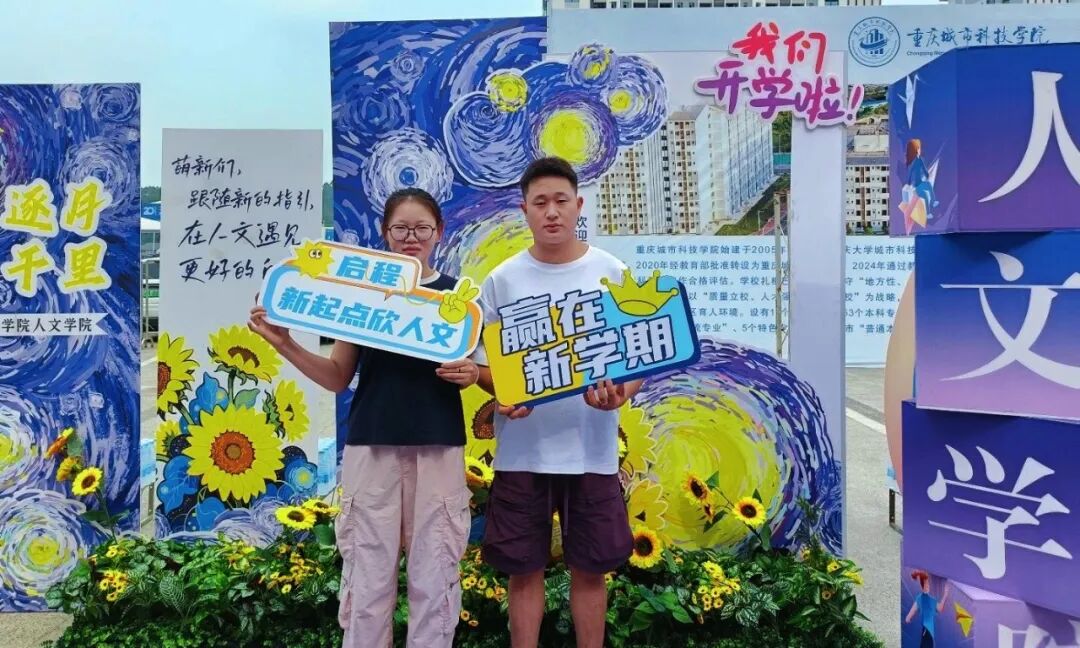 学院精心布置的充满创意与温馨的打卡墙,吸引众多新生。他们手持特色手牌,笑靥如花,在打卡墙前留下入学的首张照片,这不仅是入学纪念,更是他们开启大学精彩生活的生动注脚。