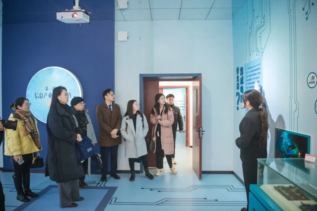 会议最后,与会全体人员移步至学校标志性的集成电路创业史陈列馆进行参观。通过感受学校整体的创新创业文化积淀,进一步增强了校企双方对应用型、创新型人才培养的信心。
