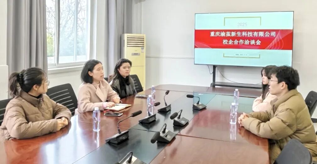 12 月 26 日,双方代表围绕人才培养模式创新、实践基地建设、产学研项目合作等核心议题展开座谈。会上,人文学院负责人介绍了学院的专业设置、师资力量与人才培养特色,表达了与企业共建实践平台、协同培育应用型人才的强烈意愿;重庆渝茧新生科技有限公司负责人详细阐述了企业的发展规划、业务领域及人才需求方向,希望通过合作实现校企资源互补、互利共赢。经过深入交流,双方在学生实习就业、实训基地共建、联合开展项目研究等方面达成初步合作意向,并敲定协议签署相关事宜。
