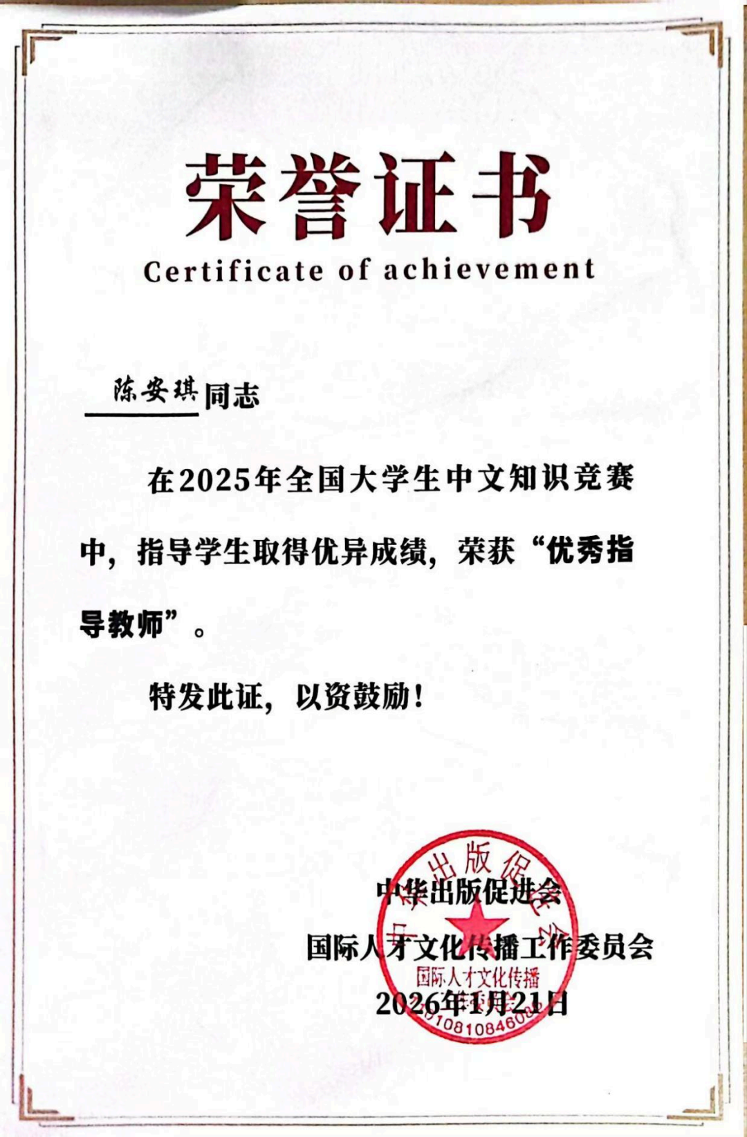作为语言文字教育的重要阵地,学院高度重视本次语言文字赛事,全力组织师生备赛并提供专业指导。经层层比拼,我院 48 名学子斩获各级奖项。同学们凭借扎实的汉字读写能力、深厚文学积累与灵活应用能力,充分展现了人文学子的专业素养与文化自信。这份荣誉不仅是师生同心的奋斗成果,更是学院深耕语言文字教育、推进教学改革、培育创新人才的生动体现,也为学子学术与职业发展奠定了坚实基础。
