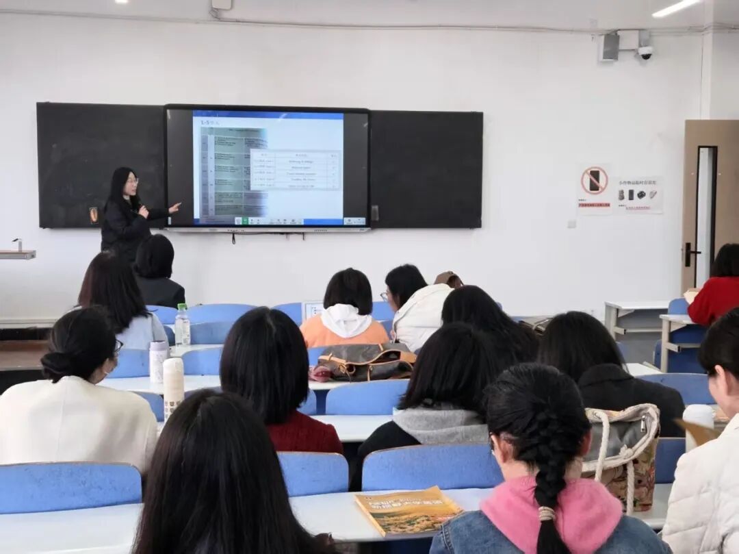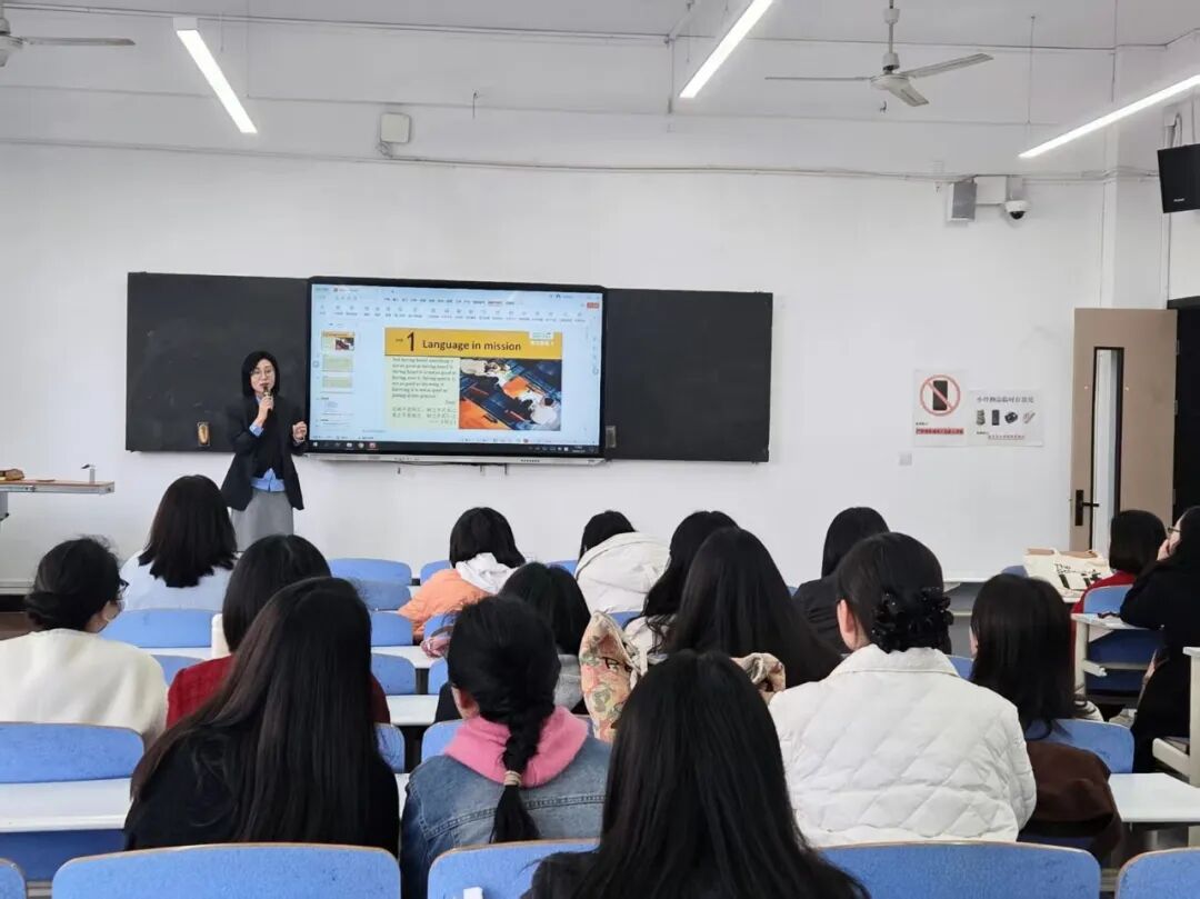 本次教研活动紧扣教学实践核心,首先开展《大学英语2》课程教学专题分享与交流,为课程教学实施明晰思路、凝聚共识。魏主任率先对课程教学工作进行全面讲解,明确课程所使用的读写、听力、《理解当代中国》及阅读练习册四本教材的授课单元与教学重点,让全体参会教师精准把握教学内容设计方向。同时,她针对学生平时成绩构成与作业布置形式提出具体建议,倡导通过小组活动、视频创作、配音练习、AI 单词测试等多样化形式,丰富课堂教学形态,激发学生学习积极性。