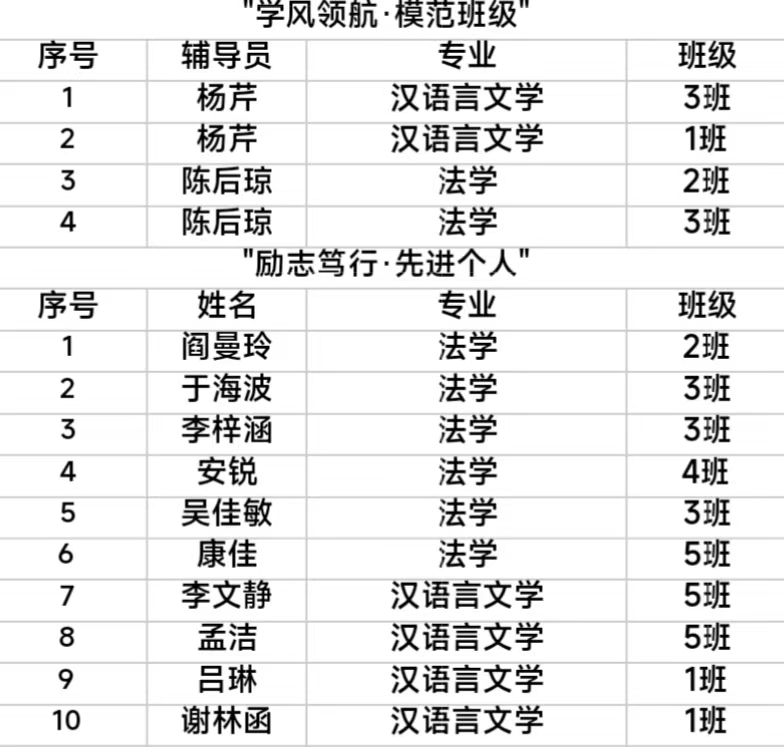 为进一步夯实我院学风建设,持续提升学生自主学习与自我管理能力,人文学院已开展2025-2026学年度2025级学生集中晚自习工作。根据《关于人文学院开展集体晚自习评奖评优的通知》文件,经个人申请、辅导员推荐、学院复审,现将评优结果公示如下: