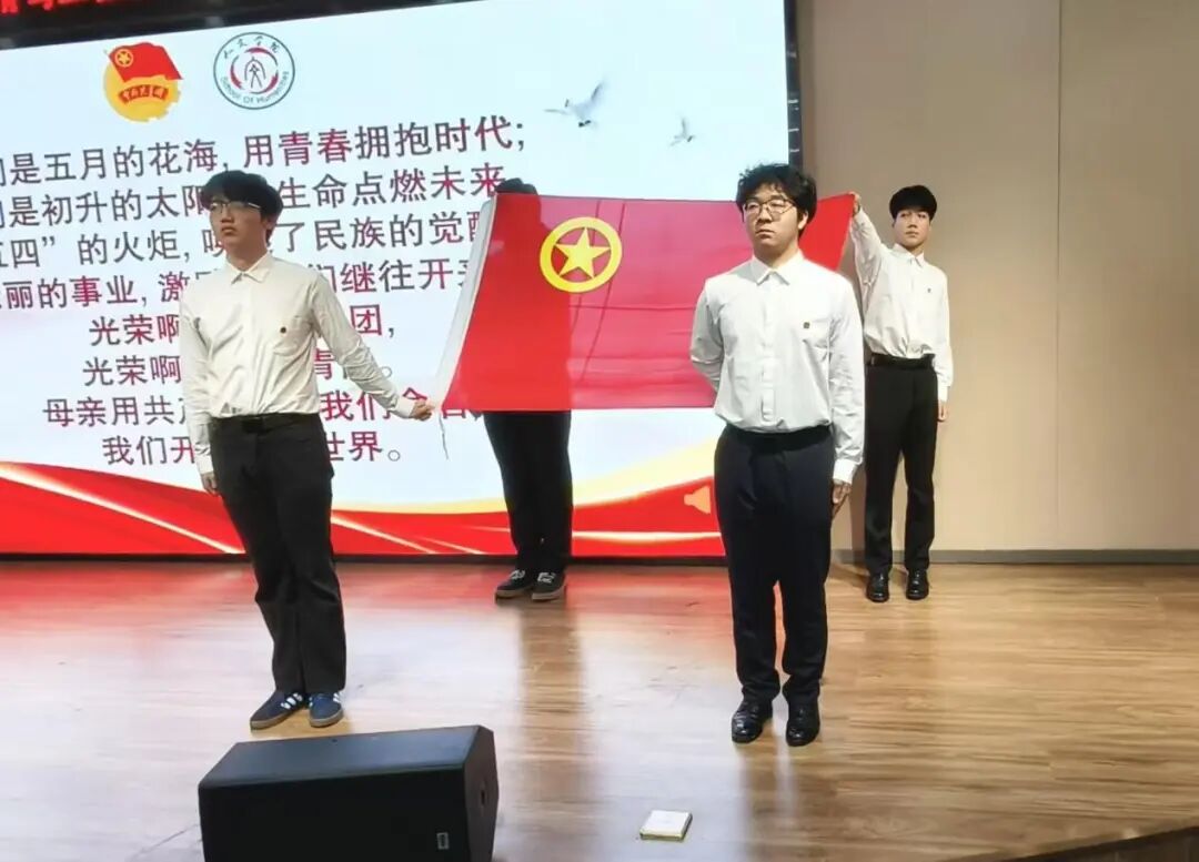 迎团旗,唱响《光荣啊!中国共青团》。全体学员整齐肃立、面向团旗,身姿挺拔、神情庄重,心怀崇敬、意气风发,充分彰显了人文学子坚定跟党走、奋进新时代的良好精神风貌。