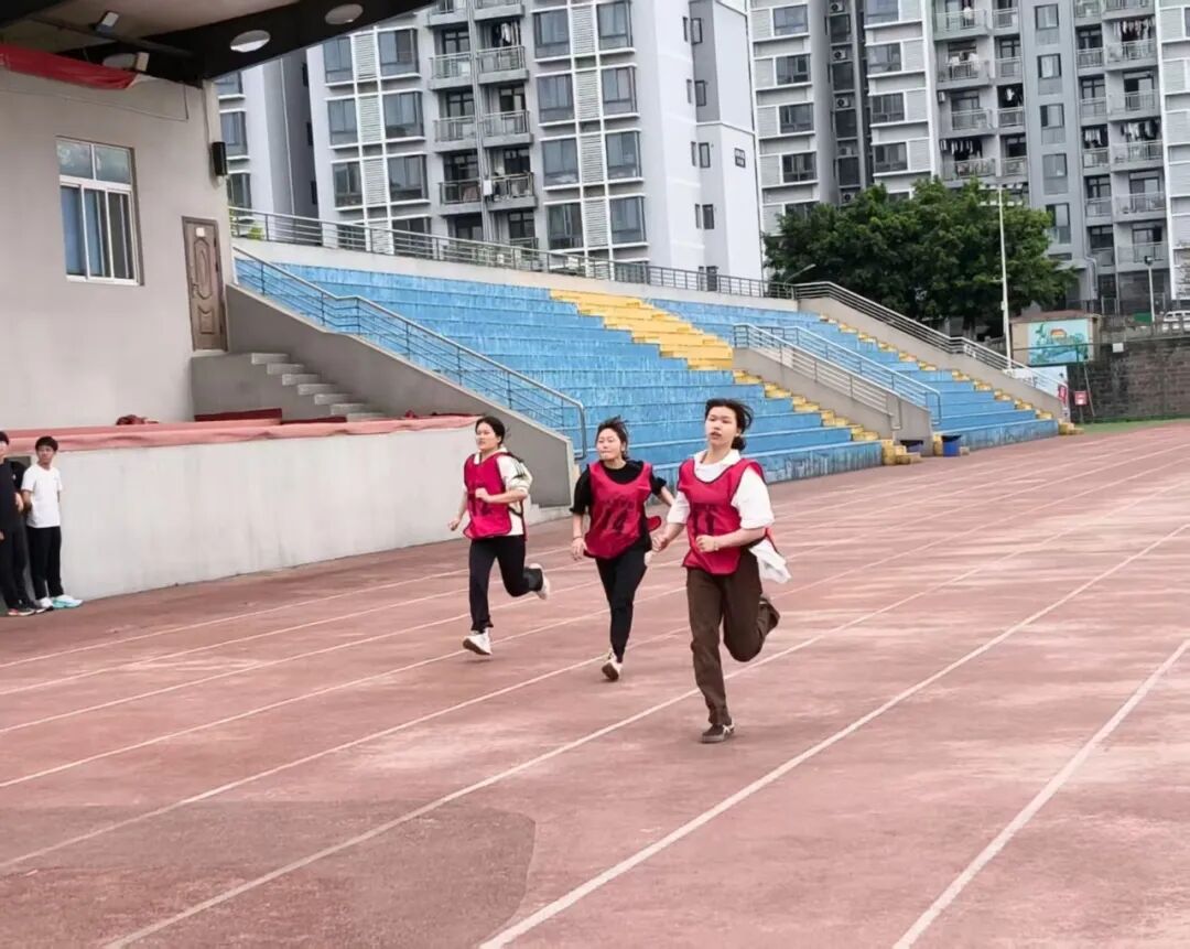 参赛选手们斗志昂扬、全力以赴。短跑项目中,选手们身姿矫健、步伐轻快,伴随着清脆的发令声响,如离弦之箭般冲向终点,用速度展现青春的激情;中长跑项目里,大家咬紧牙关、坚持不懈,在耐力的比拼中突破自我,诠释着永不言弃的体育精神;4×100米接力赛尤为精彩,接力棒在队友手中稳稳传递,默契的配合、整齐的步伐、齐心的冲刺,凝聚起团队的向心力,将赛场氛围推向高潮。
