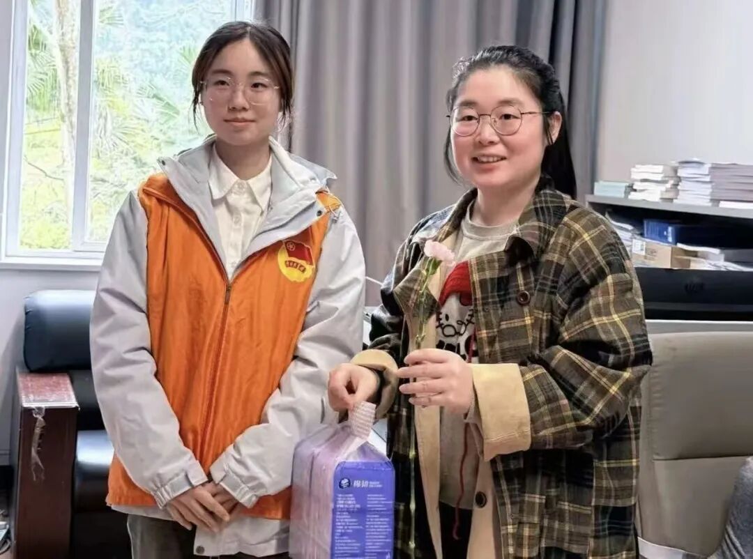 志愿者们带着精心准备的鲜花与纸巾礼袋,前往各办公室为女教师送上节日问候,还主动打扫办公区域、擦拭桌椅、整理文件,用贴心礼物与实际行动,表达对女教师辛勤耕耘、默默坚守的感恩与敬意,让办公区处处洋溢着温暖与喜悦。